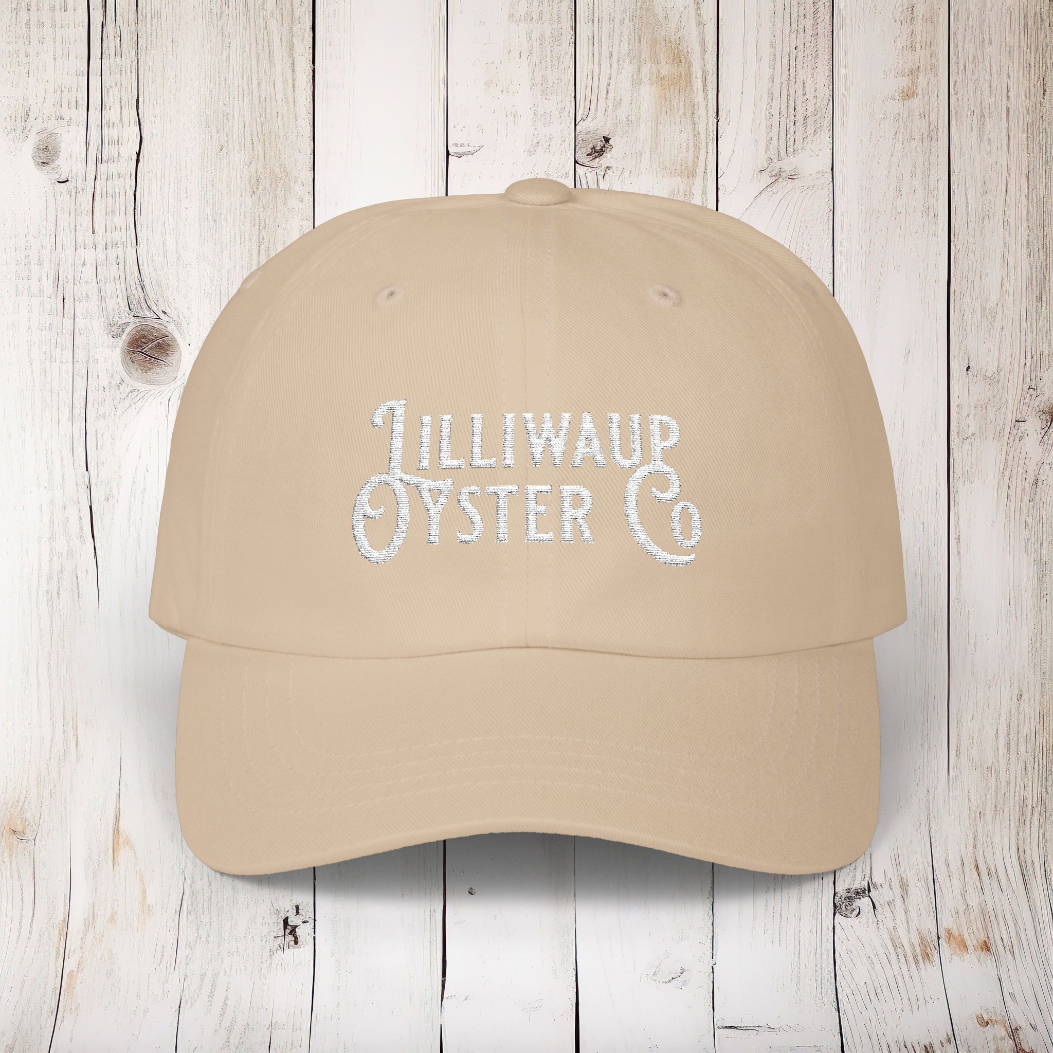 Sport the Lilliwaup Oysters Logo and Enjoy Your Day in this Classic and Comfortable “Dad” Baseball Cap. This classic dad cap is decorated with the embroidered Lilliwaup Logo and will be a timeless accessory crafted for both style and comfort. Made from 100% cotton, this cap offers a soft and breathable feel that’s perfect for all-day wear. Its unstructured design and low-profile fit give it a laid-back vibe, while the antique brass buckle closure adds a touch of vintage charm. The matching undervisor and four-row stitching on the visor provide subtle yet stylish details. With six panels and a Permacurv® visor, this cap offers a perfect blend of durability and classic aesthetics. 3 Cap Colors to Choose From with White Embroidery-Adjustable for Sizing.